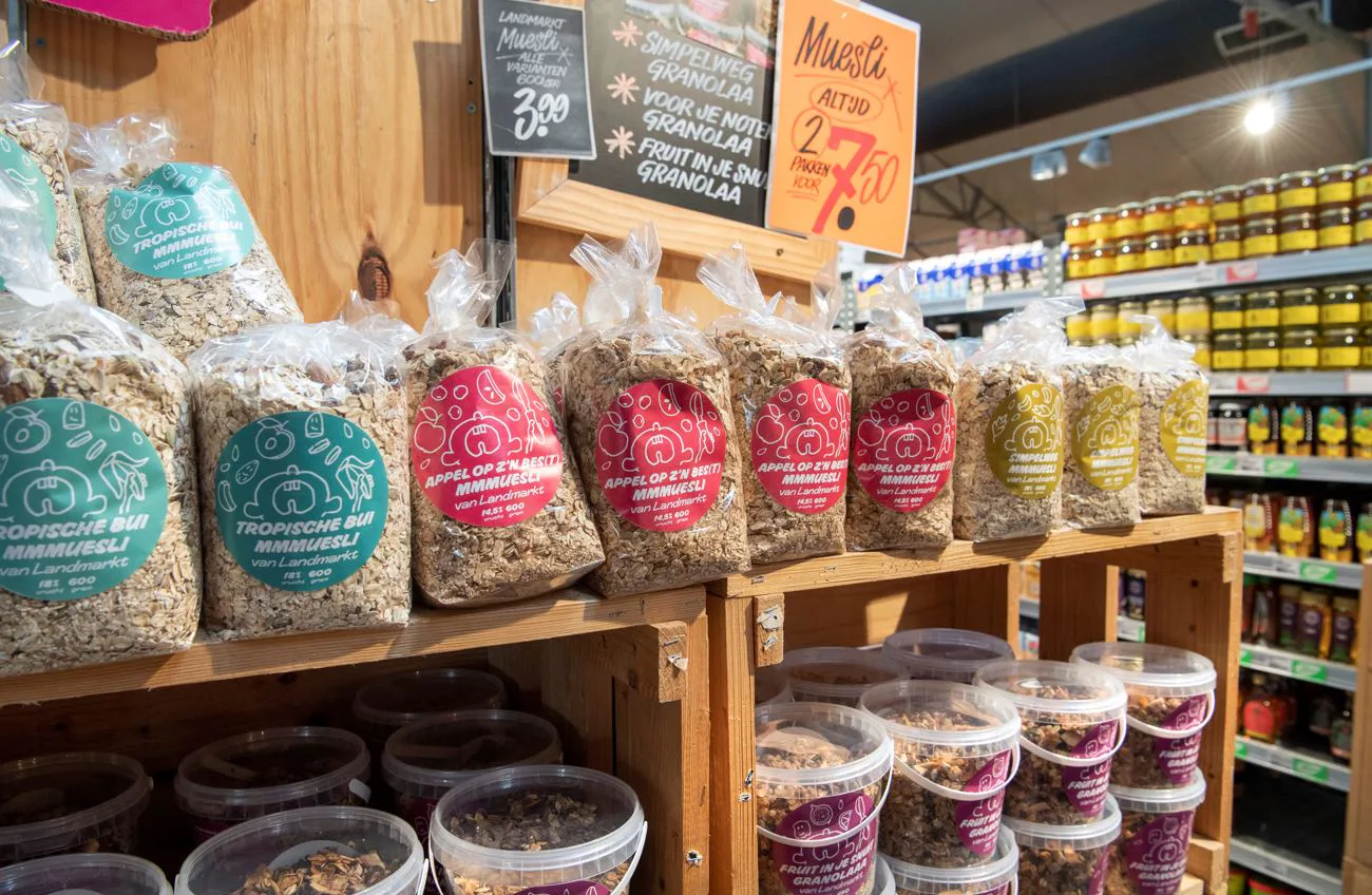 Van Banning: ‘We hebben een pilot bij Vomar. In de winkel aan de Rijnstraat in Amsterdam, een voormalige Deen-winkel, liggen nu maaltijden van Landmarkt. Die lopen als een tierelier. We hebben ook met Vomar afgesproken dat ze duidelijk worden gepresenteerd met Landmarkt-signing. Het is een marktgebied waar consumenten ook op zoek zijn naar een concept als dit en daar zocht Vomar een invulling voor. Zij hebben ons benaderd. Dit had Vomar als discountformule niet, dus zo zijn we in gesprek geraakt. Wel hebben we de eis bij Vomar neergelegd dat er geen andere maaltijden bij komen te liggen. Het moet duidelijk Landmarkt zijn. En dat werkt.’ Meurs: ‘Als dit bijdraagt aan onze missie en het vergroten van ons volume, is het een heel interessant experiment. Het is een manier om grotere naamsbekendheid te krijgen en mensen te overtuigen van je producten. Lekker eten zonder toevoegingen.’